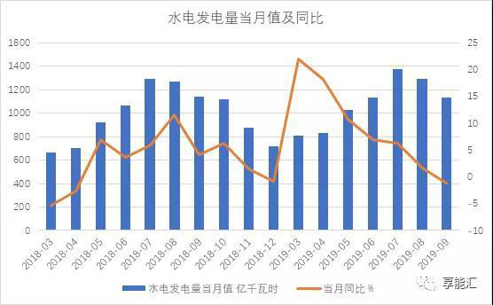 圖13:2018-2019年9月水電發(fā)電量及同比變化