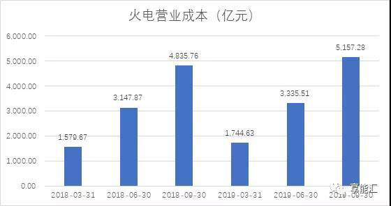 圖8:2018-2019年火電行業(yè)三季度營(yíng)業(yè)成本