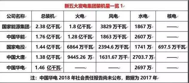 隨著電力央企合并的完成,形成新五大電力集團(tuán),分別是:國家能源集團(tuán)、中國華能、中國大唐、國家電投、中國華電。