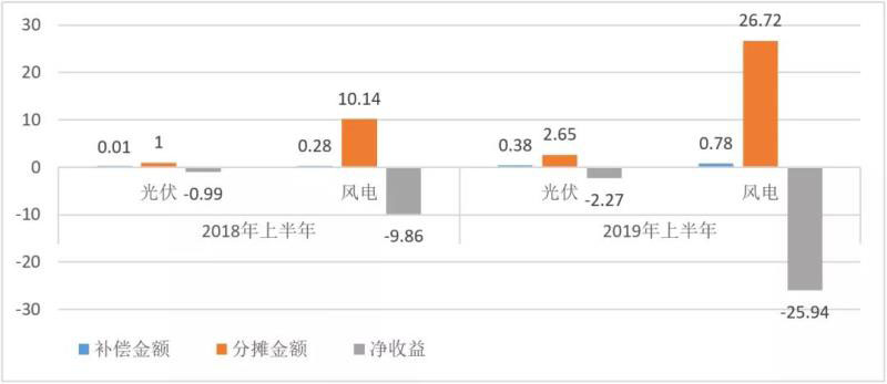 全國(guó)光伏、風(fēng)電電力輔助服務(wù)補(bǔ)償費(fèi)用與分?jǐn)偳闆r(億元)