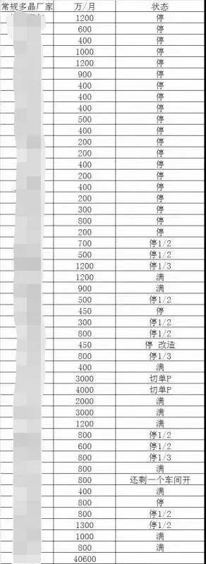 注:上圖為業(yè)內(nèi)人士統(tǒng)計的多晶廠家停工率,未經(jīng)進一步核實,僅供參考