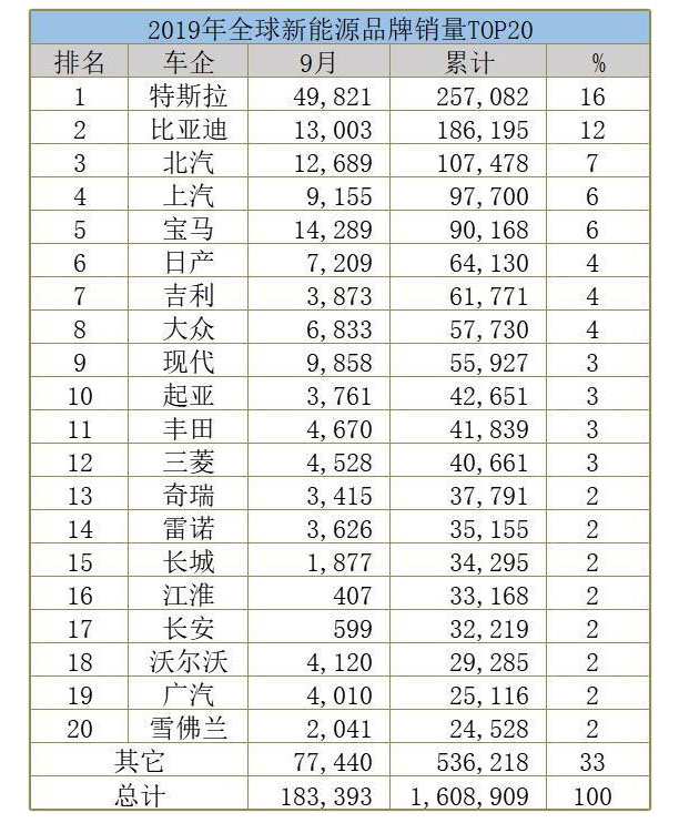 截止到9月,特斯拉和比亞迪兩者的銷量差距拉至70887輛,即便比亞迪再加上6701輛新能源商用車,兩者依然有64186輛的差距,在新能源汽車業(yè)這算不小的差距了。