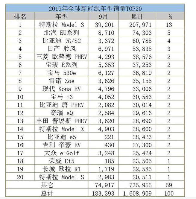 一個不容忽視的現(xiàn)象是,隨著中國新能源車型此次遭遇滑鐵盧,全球新能源車型銷量TOP20榜單也在發(fā)生微妙變化。
