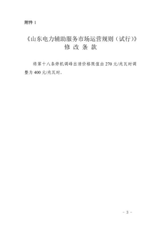 這是今年內(nèi)山東能監(jiān)辦對電力輔助服務市場運行規(guī)則進行的第二次修訂。相比2019年3月修訂版,此次修訂版本提高了停機調(diào)峰出清價格限值,將其由270元/MWh調(diào)整為400元/MWh。
