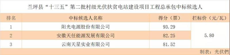 11月14日,云南省蘭坪縣“十三五”第二批村級光伏扶貧電站建設(shè)項(xiàng)目工程總承包中標(biāo)候選人公示。陽光電源以5.6元/瓦的價(jià)格擬中標(biāo)。