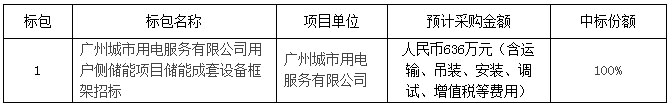 廣州城市用電服務(wù)有限公司用戶側(cè)儲(chǔ)能項(xiàng)目?jī)?chǔ)能成套設(shè)備2MW/4MWh框架招標(biāo)