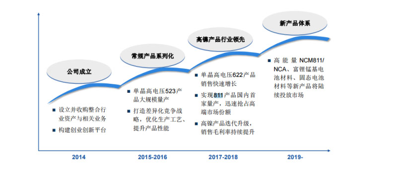 對(duì)此,容百科技表示,2016年公司正極材料產(chǎn)品以常規(guī)正極材料為主;2017年實(shí)現(xiàn)了新產(chǎn)品單晶NCM622與NCM811量產(chǎn);2018年高鎳產(chǎn)品成為主推類型。