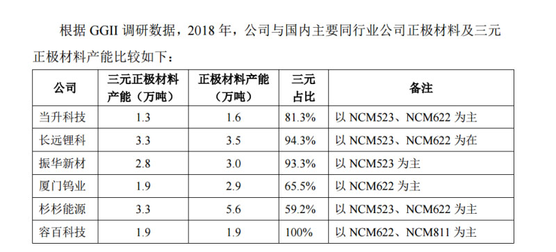 目前,國(guó)內(nèi)正極材料同行業(yè)企業(yè)中,產(chǎn)品基本上都以NCM523、NCM622為主,僅有容百科技以NCM622和NCM811為主。