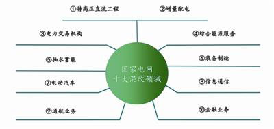 2018年12月25日,國家電網(wǎng)部署抓好十項重點工作混改,主要包括:在特高壓直流工程領(lǐng)域引入社會資本、加快推進增量配電改革試點落地見效、積極推進交易機構(gòu)股份制改造、加大綜合能源服務(wù)領(lǐng)域合作力度、大力開展抽水蓄能領(lǐng)域投資合作、持續(xù)推進裝備制造企業(yè)分板塊整體上市、加快電動汽車公司混合所有制改革、開展信息通信產(chǎn)業(yè)混合所有制改革、推進通航業(yè)務(wù)混合所有制改革、深化金融業(yè)務(wù)混合所有制改革?!白?018年底發(fā)布深化改革十大舉措以來,公司在電網(wǎng)、產(chǎn)業(yè)、金融領(lǐng)域分類分步實施,努力開創(chuàng)全面深化改革的新局面,目前多個領(lǐng)域?qū)崿F(xiàn)了重要突破?!绷_乾宜表示。