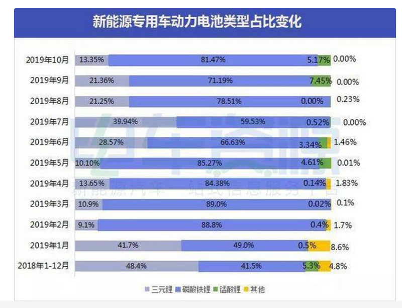 10月專用車磷酸鐵鋰依舊主導(dǎo)環(huán)比比重上漲10%