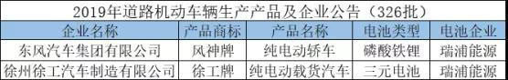 其中,在工信部最新的326批公告中,瑞浦能源配套東風汽車E60EV車型和徐工汽車純電動載貨汽車8噸中輕卡車型,該兩款車型分別采用了磷酸鐵鋰和三元體系電池。
