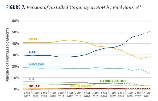 盡管太陽能和儲(chǔ)能現(xiàn)在的成本與新的天然氣發(fā)電相比具有競爭力,但美國過?;茉窗l(fā)電為天然氣發(fā)電設(shè)施的建設(shè)與運(yùn)營提供了巨大的動(dòng)力。據(jù)彭博社報(bào)道,過去兩年,PJM地區(qū)的天然氣發(fā)電量增加了11GW,并且計(jì)劃再增加34GW。GridStrategies公司的調(diào)查報(bào)告中的圖表說明了這種動(dòng)態(tài)性。