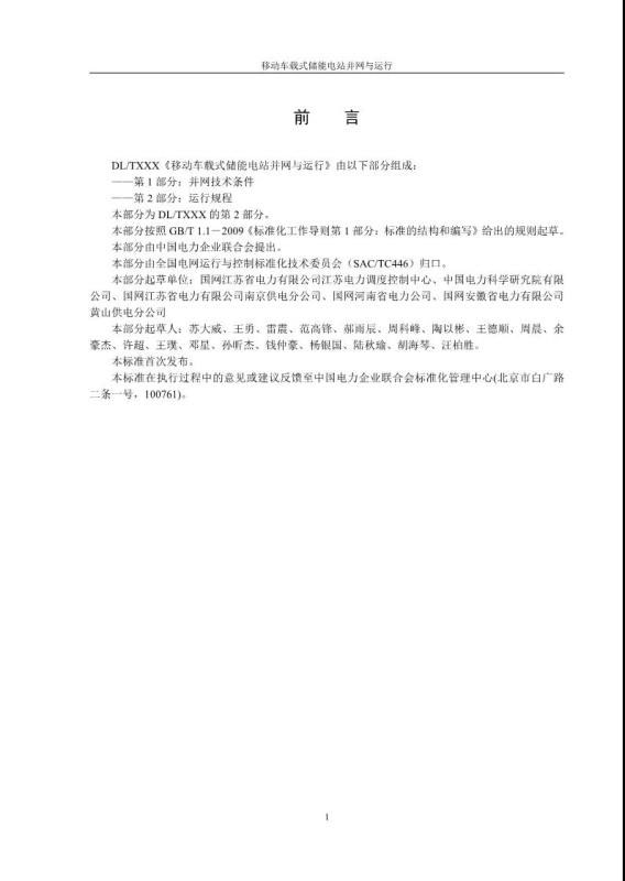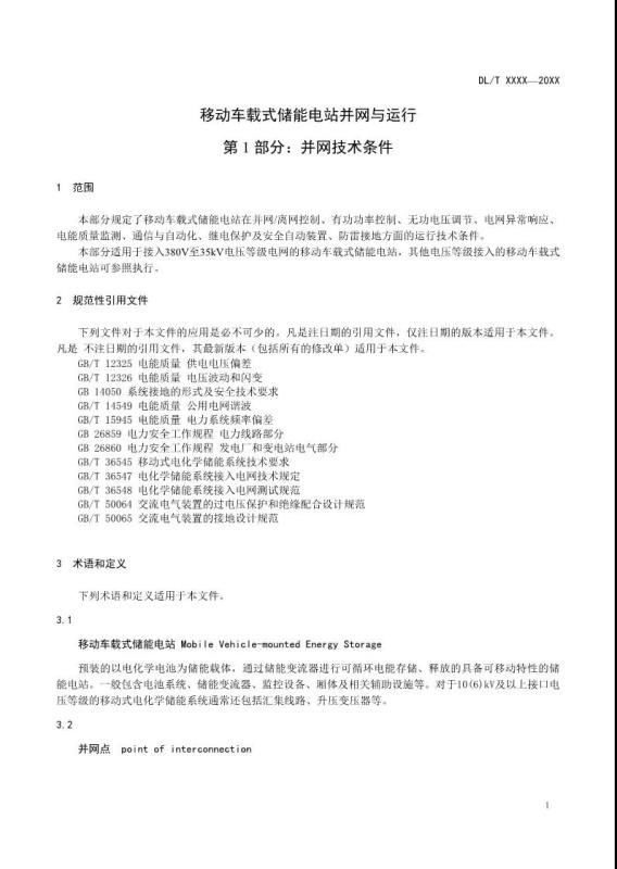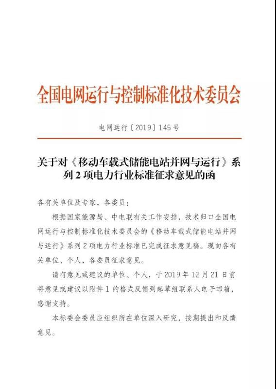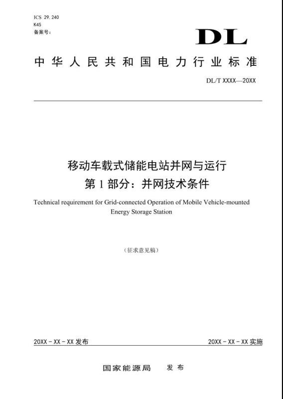 近日,根據(jù)國家能源局、中電聯(lián)有關(guān)工作安排,技術(shù)歸口全國電網(wǎng)運(yùn)行與控制標(biāo)準(zhǔn)化技術(shù)委員會(huì)的《移動(dòng)車載式儲(chǔ)能電站并網(wǎng)與運(yùn)行》第1 部分:并網(wǎng)技術(shù)條件和《移動(dòng)車載式儲(chǔ)能電站并網(wǎng)與運(yùn)行》第2 部分:運(yùn)行規(guī)程電力行業(yè)標(biāo)準(zhǔn)已完成征求意見稿,現(xiàn)向各有關(guān)單位、個(gè)人,各委員征求意見。起草單位包括國網(wǎng)江蘇省電力有限公司江蘇電力調(diào)度控制中心、中國電力科學(xué)研究院有限公司等。