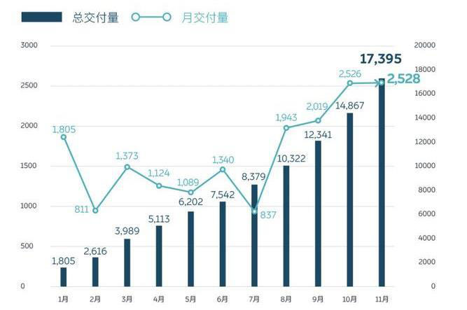 蔚來汽車1-11月交付數(shù)據(jù) 來源:蔚來汽車官方