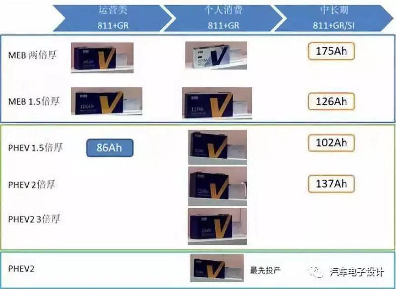 尺寸:目前看到蜂巢在做傳統(tǒng)的355、590的模組都要做,往PHEV的標準模組、BEV的355模組和未來590的模組要求 這兩點在目前的產品體系里面是比較清楚的,如下所示,整體的規(guī)劃都是按照NCM811來做,其實對于一個新的電池企業(yè)往相對成熟的產品系列是沒有意義的,一個是沒有價格優(yōu)勢,另外一個是積累的經驗過一個產品周期可能就沒用了。