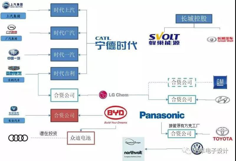 1、由電池企業(yè)主導的合資模式:這種主導模式是電池企業(yè)出電芯技術和整車企業(yè)一起投錢建立產能,整車企業(yè)主導Pack企業(yè)的模式。我們可以看到在這種模式下,車企得到了穩(wěn)定的供應,電池企業(yè)保證了供應的關系,但是在電芯的技術路線,工藝和生產方面還是在原有的電池企業(yè)的掌控之下,目前國內的幾個合資的案例都是這個方向。