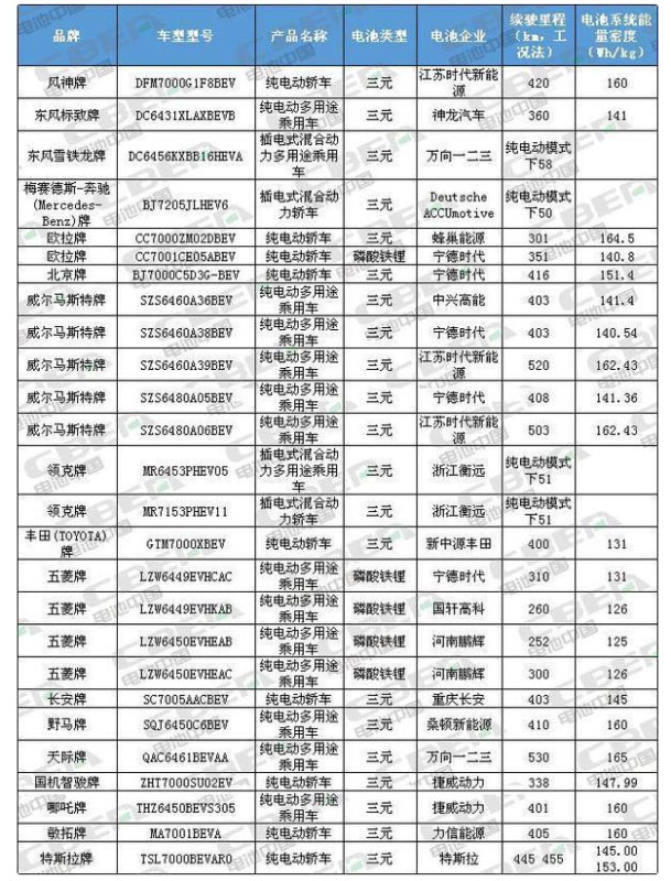 12月6日,國家工信部在其官方網(wǎng)站發(fā)布了《新能源汽車推廣應(yīng)用推薦車型目錄(2019年第11批)》,共包含177款車型。其中符合2019年補貼新政產(chǎn)品技術(shù)要求的新能源乘用車有26款、新能源客車有78款,新能源專用車有42款。