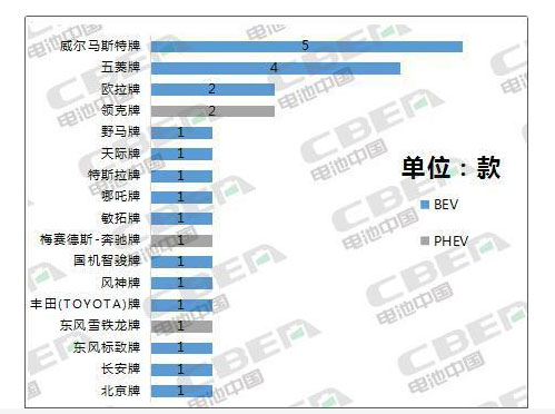 從入選車型品牌看,造車新勢力威馬汽車生產(chǎn)的威爾馬斯特牌入選5款車型,排名第一;排名第二的是合資品牌--五菱牌,入選4款車型;領(lǐng)克牌和歐拉牌分別入選2款車型,并列第三。從動力類型看,只有領(lǐng)克牌、東風(fēng)雪鐵龍牌、梅賽德斯-奔馳牌3個品牌共4款車型全部為插電式混合動力車型,搭載的動力電池均為三元電池。