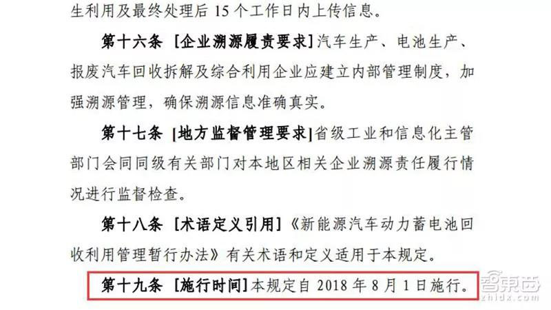 8月1日,《新能源汽車動(dòng)力蓄電池回收利用溯源管理暫行規(guī)定》(征求意見(jiàn)稿)正式實(shí)施,規(guī)定了監(jiān)督流程,建立了溯源平臺(tái)。