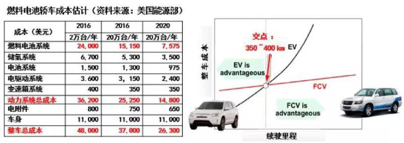 需要注意的是,當(dāng)前轎車領(lǐng)域在全球范圍內(nèi)仍然是純電動車占主流,絕大多數(shù)企業(yè)銷售的純電動車遠(yuǎn)超燃料電池汽車,誕生了像特斯拉這樣的明星企業(yè)。即使是燃料電池最堅(jiān)定的支持者豐田,近期也與比亞迪在電池領(lǐng)域達(dá)成合作,因此轎車也就是乘用車的發(fā)展趨勢仍以純電動為主。雖然目前純電動發(fā)展速度較快,但從成本來看,將來燃料電池在轎車上仍然會有應(yīng)用,這主要有以下兩個原因。