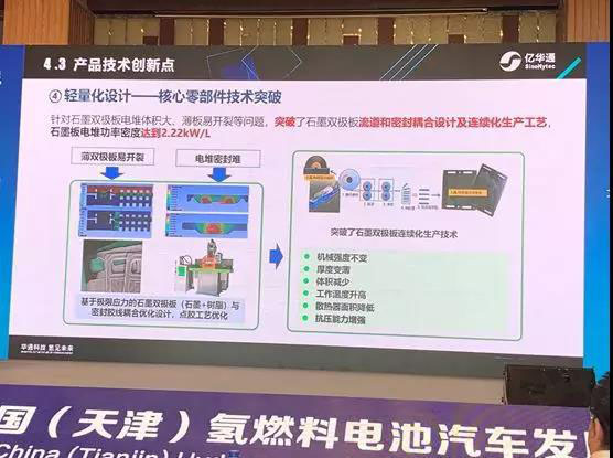 6、輕量化設(shè)計——核心零部件技術(shù)突破。針對石墨雙極板電堆體積大、薄板易開裂等問題,突破了石墨雙極板流道和密封耦合設(shè)計及連續(xù)化生產(chǎn)工藝,石墨板電堆功率密度達(dá)到2.22kW/L。