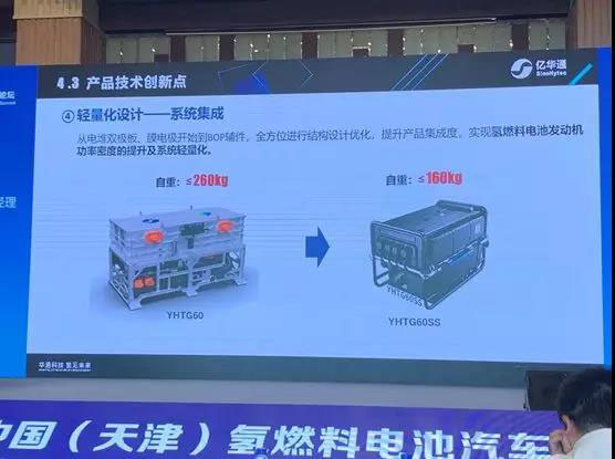 5、輕量化設(shè)計——系統(tǒng)集成。YHTG60和YHTG60SS燃料電池系統(tǒng)額定功率相同,但重量從≤260kg降為≤160kg。