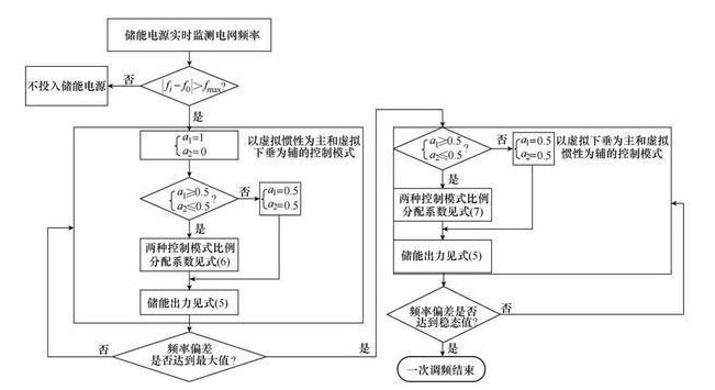 通過分析儲能電源虛擬慣性和虛擬下垂兩種控制策略對頻率特性的影響,提出一種可隨頻率偏差值和頻率偏差變化率變化而自動調(diào)整兩種調(diào)頻模式參與調(diào)頻的分配比例系數(shù)的模型,此模型可實(shí)現(xiàn)這兩種控制策略的優(yōu)勢互補(bǔ),同時(shí)可實(shí)現(xiàn)兩種調(diào)頻模式的平滑切換,可有效地避免控制模式直接切換時(shí)引起的二次擾動。