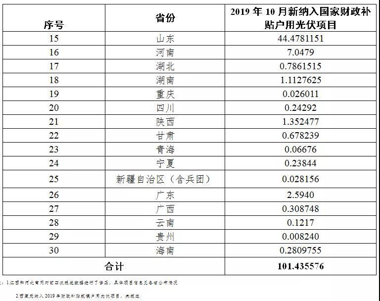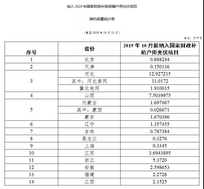 12月15日國家能源局新能源司發(fā)布了2019年10月戶用光伏項目信息。