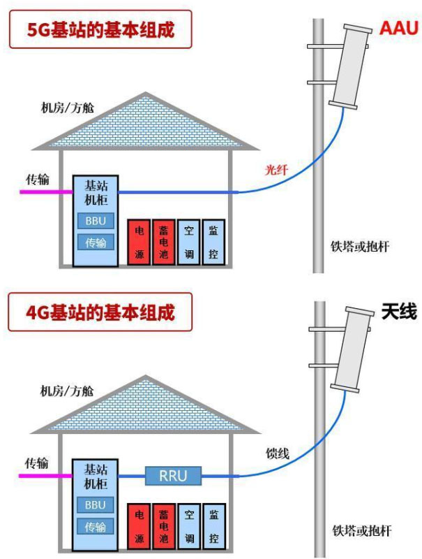 以我們最常見的宏基站舉例來說,5G相比4G的主要區(qū)別在于,將RRU(射頻拉遠單元)和天線饋線“合并”變成了AAU(有源天線單元),通過光纖和BBU(基帶處理單元)相連。目前設(shè)備商給運營商的報價是:1個BBU+3個AAU,單僅硬件價格,國內(nèi)報價是20萬元人民幣,國外報至30-40萬元人民幣。所以這個報價是一個波動很大的范圍,即便按較小價位來說,一組5G基站主設(shè)備至少也得20-25萬元。