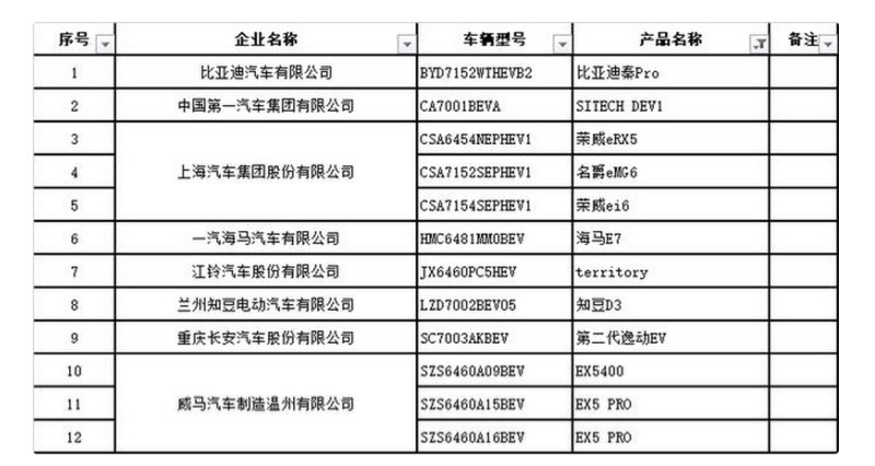 此外,在工信部的撤銷《免征車輛購(gòu)置稅的新能源汽車車型目錄》的車型名單中,有61家企業(yè)共計(jì)138款車型被移出《免征車輛購(gòu)置稅的新能源汽車車型目錄》,其中涉及8家乘用車企業(yè)12款乘用車車型,包括比亞迪秦Pro、榮威eRX5和ei6、名爵eMG6、知豆D3、海馬E7、長(zhǎng)安第二代逸動(dòng)EV、以及威馬EX5 PRO等。