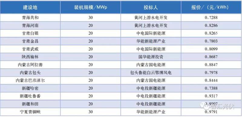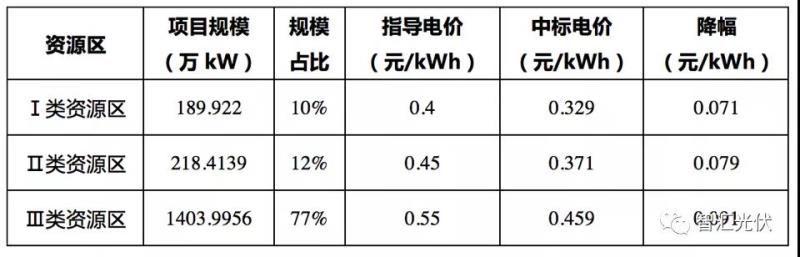 2019年,國家能源局推出的全國性的競爭電價政策。雖然標桿電價定在0.4元/kWh、0.45元/kWh、0.55元/kWh,但項目拿到的實際價格大幅低于知道電價,具體如下表所示。