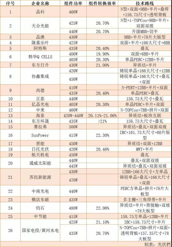 2019年電池組件效率記錄一覽