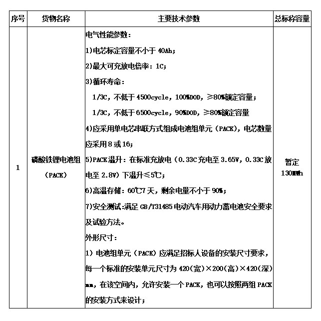 3)招標(biāo)目標(biāo):凡通過本次招標(biāo)評審的合格供應(yīng)商,將由招標(biāo)人頒發(fā)合格供應(yīng)商證書,可參與甘肅720MWh大規(guī)模儲能示范項目瓜州子站130MWh項目中磷酸鐵鋰電池組采購的后續(xù)比選;凡未獲得合格供應(yīng)商證書的,將不能參與后續(xù)比選。