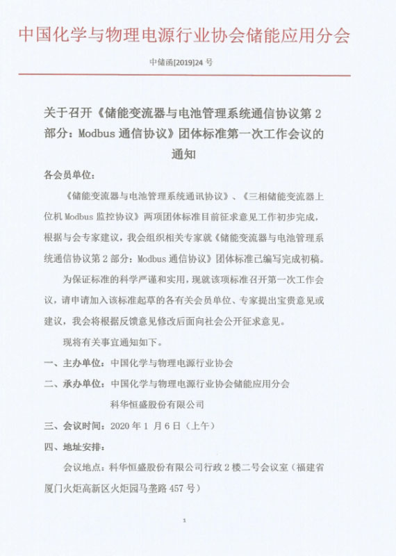 關(guān)于召開《儲能變流器與電池管理系統(tǒng)通信協(xié)議第2部分:Modbus通信協(xié)議》團(tuán)體標(biāo)準(zhǔn)第一次工作會議的通知