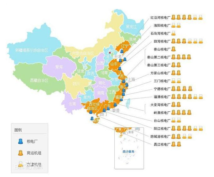 中國核電站分布圖截止2018年4月15日