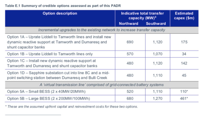 該公司的首選方案是1A方案,將升級從Liddell到Tamworth的電力線路,并安裝新的動態(tài)無功功率支持設(shè)備和并聯(lián)電容器組。幾家大型可再生能源開發(fā)商青睞電池儲能系統(tǒng)方案選擇,但凈收益不如1A方案。