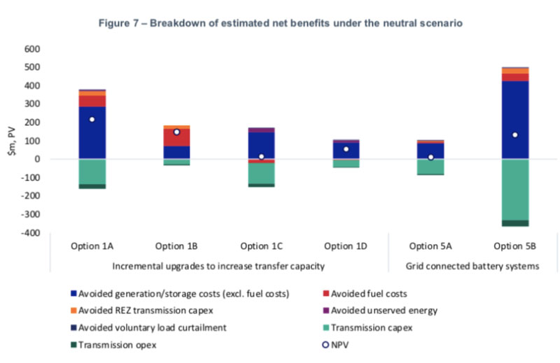 Transgrid公司在調(diào)查報告中指出,“雖然5B方案提供了最大的總收益,但在這種情況下,預(yù)計只能提供方案1A預(yù)期凈收益的60%。這是因為該選擇方案具有較高的前期投資成本,并且電池儲能系統(tǒng)的資產(chǎn)壽命較短,因此需要在評估期內(nèi)進行再投資?!?