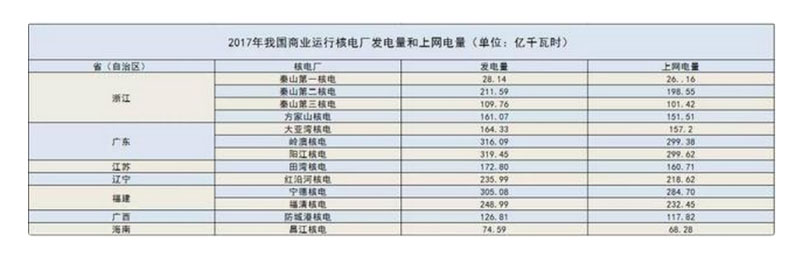 從發(fā)電量和上網(wǎng)電量上看,2017年,我國(guó)商業(yè)運(yùn)行核電廠年累計(jì)發(fā)電量2474.69億千瓦時(shí),占全國(guó)總發(fā)電量的3.86%;年累計(jì)上網(wǎng)電量2316.42億千瓦時(shí),其中送往香港電網(wǎng)電量125.76億千瓦時(shí);商用核電機(jī)組整體設(shè)備平均利用率為7108.05小時(shí),平均利用率為81.14%。