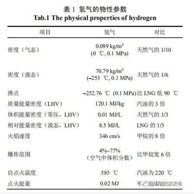 氫氣燃燒只產(chǎn)生水,因此被認(rèn)為是最清潔、真正實現(xiàn)零排放的能源。但由于其二次能源的基本屬性,氫氣的清潔和環(huán)保性不應(yīng)僅體現(xiàn)在最終被利用時,還要著眼于生產(chǎn)氫氣的一次能源的來源以及氫氣的制備、運輸、存儲和最終使用等環(huán)節(jié),從全生命周期的角度來考察。這些環(huán)節(jié)都需要消耗能源資源,也可能會帶來相應(yīng)的污染物與溫室氣體排放。氫氣的物性參數(shù)見表1。