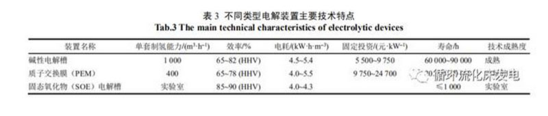 制氫裝置在國內(nèi)外均有商業(yè)化運行。其中,PEM電解水制氫裝置成本較高,一般是堿性電解水裝置的3倍左右3種電解裝置的主要技術(shù)特點對比見表3。