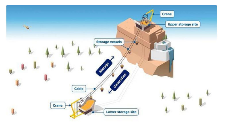 Hunt和他的合作者設(shè)計了一種新的系統(tǒng)來解決鋰離子電池長期用于儲能:山地重力儲能,簡稱MGES。與水力發(fā)電類似,MGES包括在海拔高度儲存物質(zhì)以產(chǎn)生重力能。當儲存的物質(zhì)下落并轉(zhuǎn)動渦輪機發(fā)電時,能量被回收。該團隊在11月6日發(fā)表在《能源》雜志上的一篇論文中描述了它的系統(tǒng)。Hunt解釋說:“我們建議建造一個大的沙礫水庫,而不是建一座大壩。”MGES的關(guān)鍵在于找到兩個海拔高度相差1000米的山頂?shù)攸c是理想的?!案卟钤酱?,技術(shù)就越便宜,”他說。這些地點看起來很相似,每一個地點都有一個類似礦山的砂或礫石儲存站和一個正下方的加油站組成。閥門將材料釋放到等待的容器中,然后通過起重機和電機電纜將其運送到上層現(xiàn)場。在那里,沙子或礫石被儲存了幾周,幾個月,甚至幾年,直到可以使用為止。當物質(zhì)被移回山下時,儲存的引力能被釋放并轉(zhuǎn)化為電能。該系統(tǒng)非常靈活,Hunt說,因為你可以很容易地改變電纜的速度,增加負載,或改變船只的數(shù)量,以滿足不同的能源需求。Hunt說,與抽水蓄能水電站和大壩等傳統(tǒng)的長期蓄水方法相比,MGES的效果更好,因為它對環(huán)境的影響很小。而且,成堆的沙子很便宜,比水還便宜。沙子不會蒸發(fā),所以你可以繼續(xù)無限期地使用它。Hunt估計,通過這個系統(tǒng)儲存能量的年成本將在每兆瓦時50至100美元之間變化。