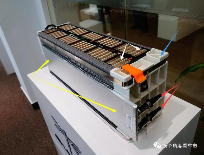 在高溫?zé)峁芾矸矫?,除通過BMS(電池管理系統(tǒng))多點(diǎn)監(jiān)控電池溫度的變化之外,平板式的“口琴管”結(jié)構(gòu)將鋪滿整個(gè)動(dòng)力電池總成上下表面,“口琴管”結(jié)構(gòu)中間流通的冷卻液通過主動(dòng)式循環(huán)將多余的“熱量”迅速的循環(huán)并由水冷板模組接入電動(dòng)壓縮機(jī)帶來(lái)的“冷量”進(jìn)行交換式主動(dòng)冷卻降溫。