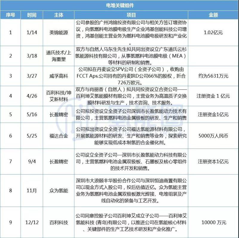以下為2019年氫能與燃料電池產(chǎn)業(yè)投資項(xiàng)目:(氫能圈根據(jù)公開資料整理)