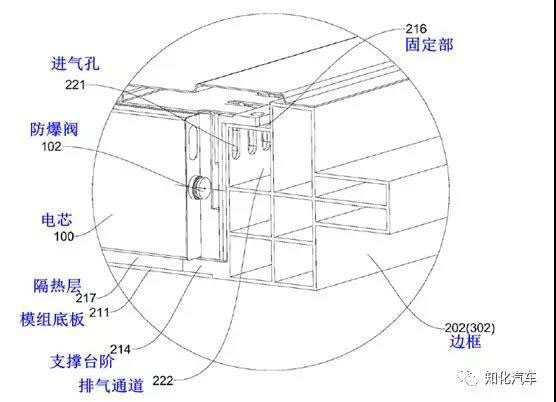 這個(gè)圖也可以看出比亞迪CTP熱失控的基本思路,正對著防爆閥設(shè)計(jì)進(jìn)氣孔,將熱失控發(fā)生后的氣體、火焰等引導(dǎo)到排氣通道,經(jīng)排氣通道排向周圍環(huán)境。另外有多個(gè)模組的,模組之間會(huì)形成物理隔離;整個(gè)電池包的外面應(yīng)該還會(huì)有平衡防爆閥;這個(gè)思路與Model S的設(shè)計(jì)比較一致,難點(diǎn)在于IP67,熱失控通道的進(jìn)水腐蝕問題。