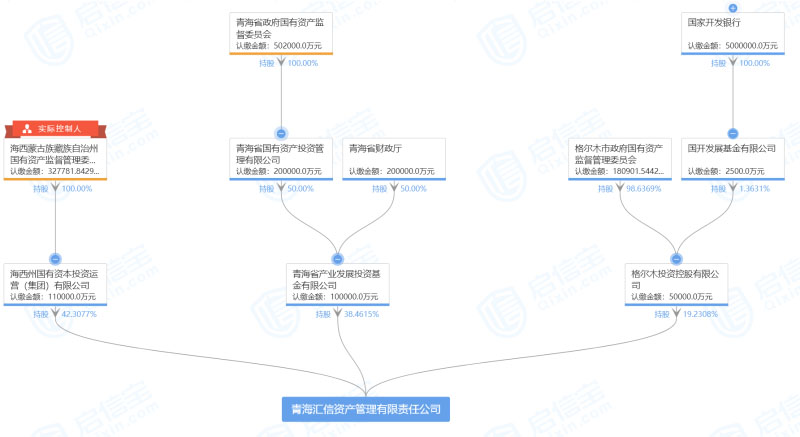 啟信寶數(shù)據(jù)顯示,青海匯信成立于2019年12月中旬,注冊資本26億元,第一大股東為海西州國有資本投資運營(集團)有限公司,持股比例為42.31%,另外兩大股東為青海省產(chǎn)業(yè)發(fā)展投資基金有限公司和格爾木投資控股有限公司,分別持股38.46%和19.23%。上述三大股東的背后則是青海當?shù)厥 ⑹校ㄖ荩┑膰Y委或財政部門。