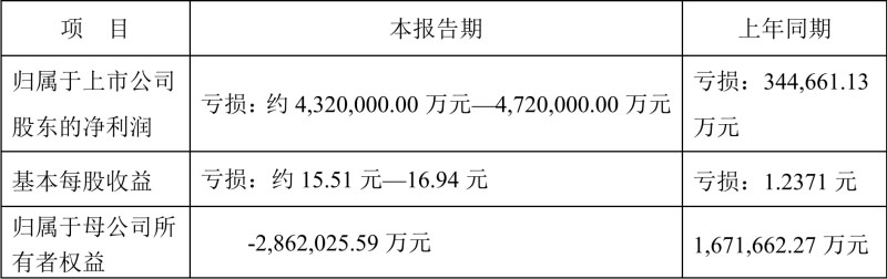 大幅折價處置不良資產(chǎn)后,*ST鹽湖2019年度業(yè)績也將因巨額資產(chǎn)減值損失出現(xiàn)大幅虧損。*ST鹽湖預計2019年公司預計虧損約432億元~472億元?!睹咳战?jīng)濟新聞》記者注意到,此次*ST鹽湖預虧超400億元,或?qū)⒊蔀榻陙鞟股虧損最多的公司。