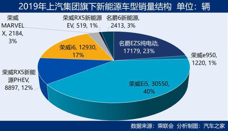 上汽集團(tuán)的新能源車型有榮威和名爵兩個(gè)板塊,榮威品牌是上汽集團(tuán)的新能源“老家底”,而名爵品牌去年開(kāi)始推出純電動(dòng)車型和插電式混合動(dòng)力車型各一款。2019年上汽集團(tuán)銷量中純電動(dòng)車型5.04萬(wàn)輛,插電式混合動(dòng)力車型2.55萬(wàn)輛。12月份的銷量沖高,主要來(lái)自榮威Ei5的貢獻(xiàn)。即便如此,2019年全年上汽集團(tuán)旗下新能源車銷量還是同比下降了21.75%。
