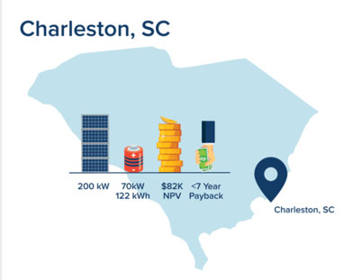 盡管受到監(jiān)管機(jī)構(gòu)的不利影響,但在查爾斯頓這樣的城市,太陽(yáng)能+儲(chǔ)能系統(tǒng)可以在不到7年的時(shí)間內(nèi)收回投資,這要受到海岸電力合作社的高需求費(fèi)用(大于16美元/千瓦)和使用時(shí)間費(fèi)率(TOU)結(jié)構(gòu)的限制。對(duì)于南卡羅來(lái)納州的典型中型商業(yè)客戶來(lái)說(shuō),每年節(jié)省的電費(fèi)為15萬(wàn)美元。