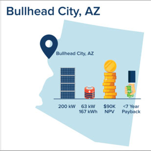 電池儲(chǔ)能系統(tǒng)的部署也正在迅速變得經(jīng)濟(jì),特別是對(duì)于像布爾黑德市這樣的城市中的居民來(lái)說(shuō),其商業(yè)需求收費(fèi)高(每千瓦15美元)加上使用時(shí)間費(fèi)率(TOU)結(jié)構(gòu)。對(duì)于這些客戶來(lái)說(shuō),太陽(yáng)能+儲(chǔ)能系統(tǒng)將在不到7年的時(shí)間內(nèi)收回投資。對(duì)于亞利桑那州的典型中型商業(yè)客戶來(lái)說(shuō),每年將節(jié)省12萬(wàn)美元的電費(fèi)。