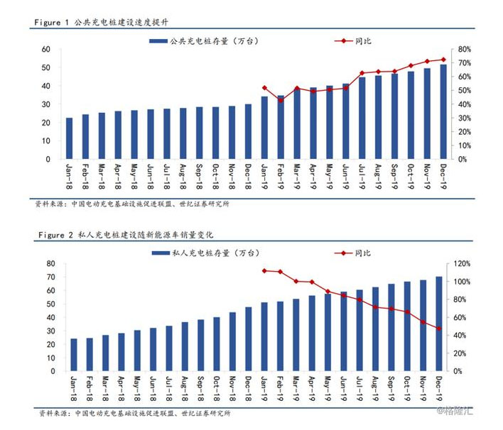 從月度數(shù)據(jù)上看,去年充電樁數(shù)量全年保持穩(wěn)定增長,特別是公有充電樁數(shù)量有加速增長的態(tài)勢。而私有充電樁增速有所下滑,這可能受到新能源汽車銷量下滑的影響。